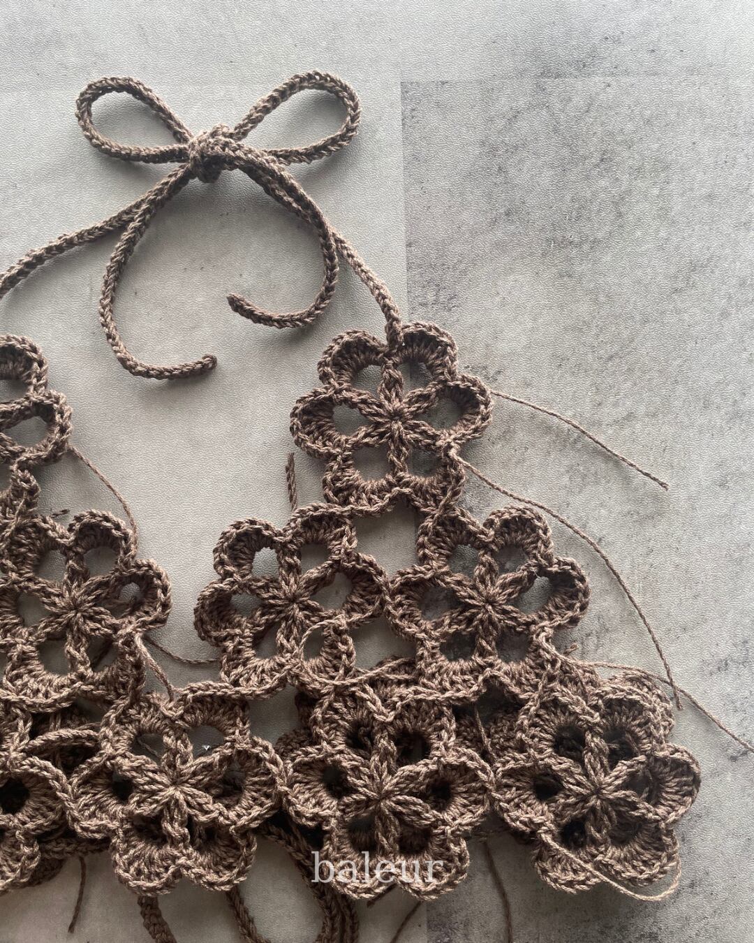 デザインは個性的ですが細めの糸を使うことで、繊細で優しい雰囲気を演出します!