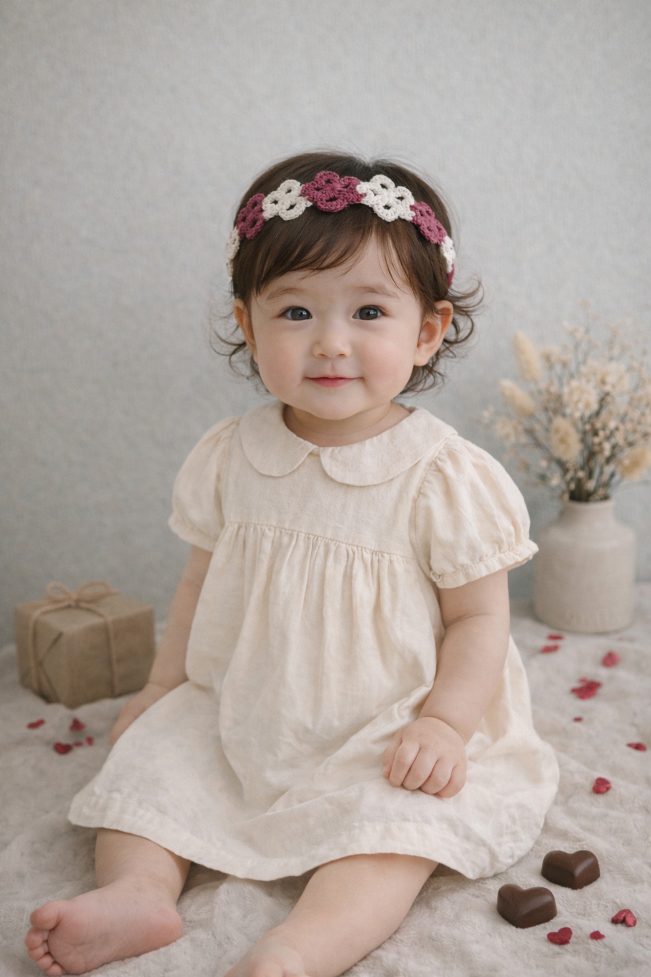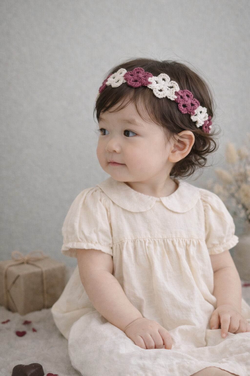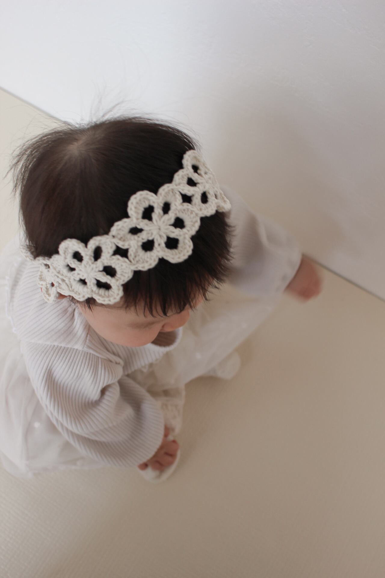 【0-1y】lace bloom band かぎ編みヘアバンド ベビーキッズ バレンタイン・お花見にも♡
