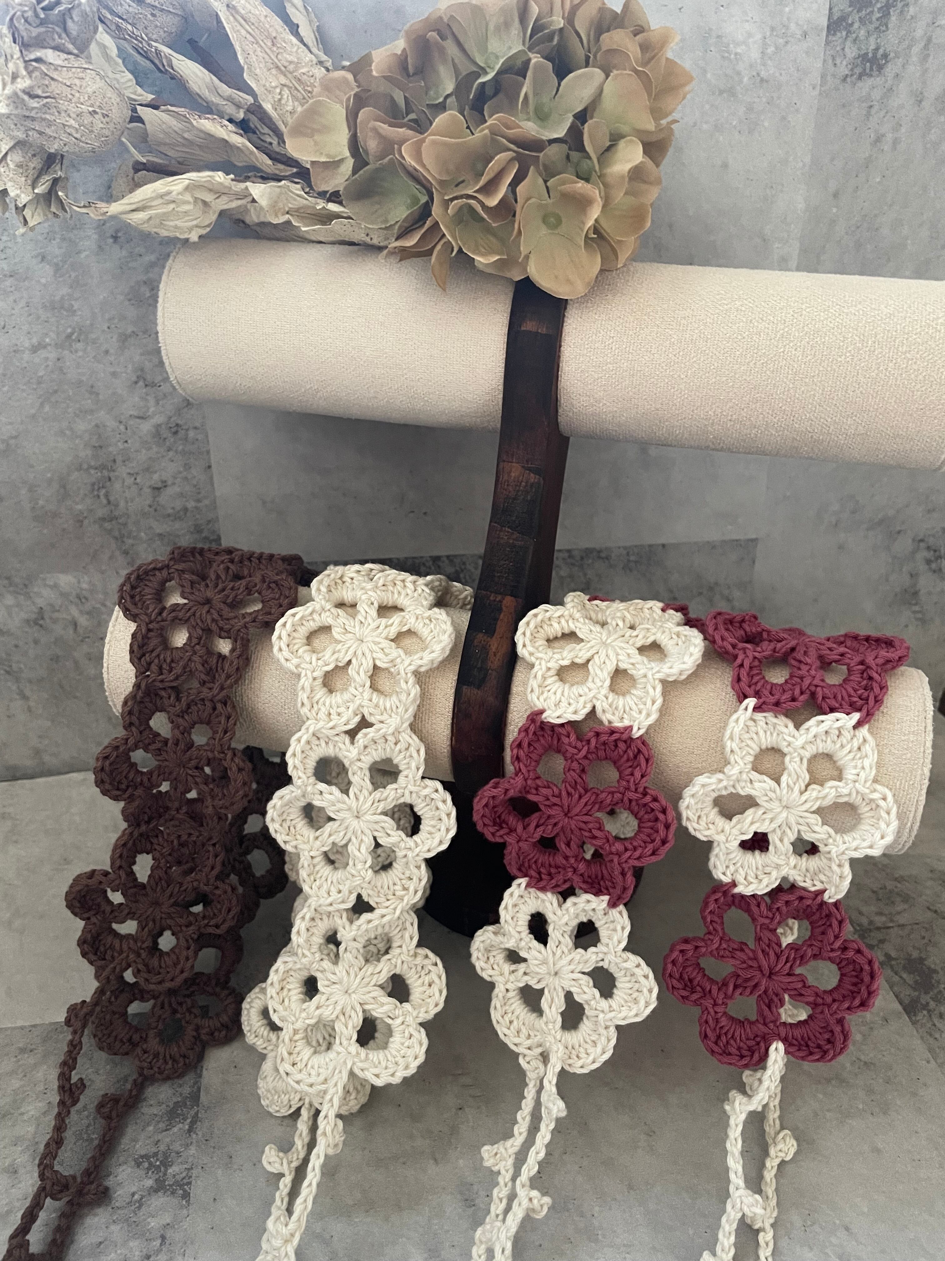 透かし編みのお花がかわいいヘアバンド♡