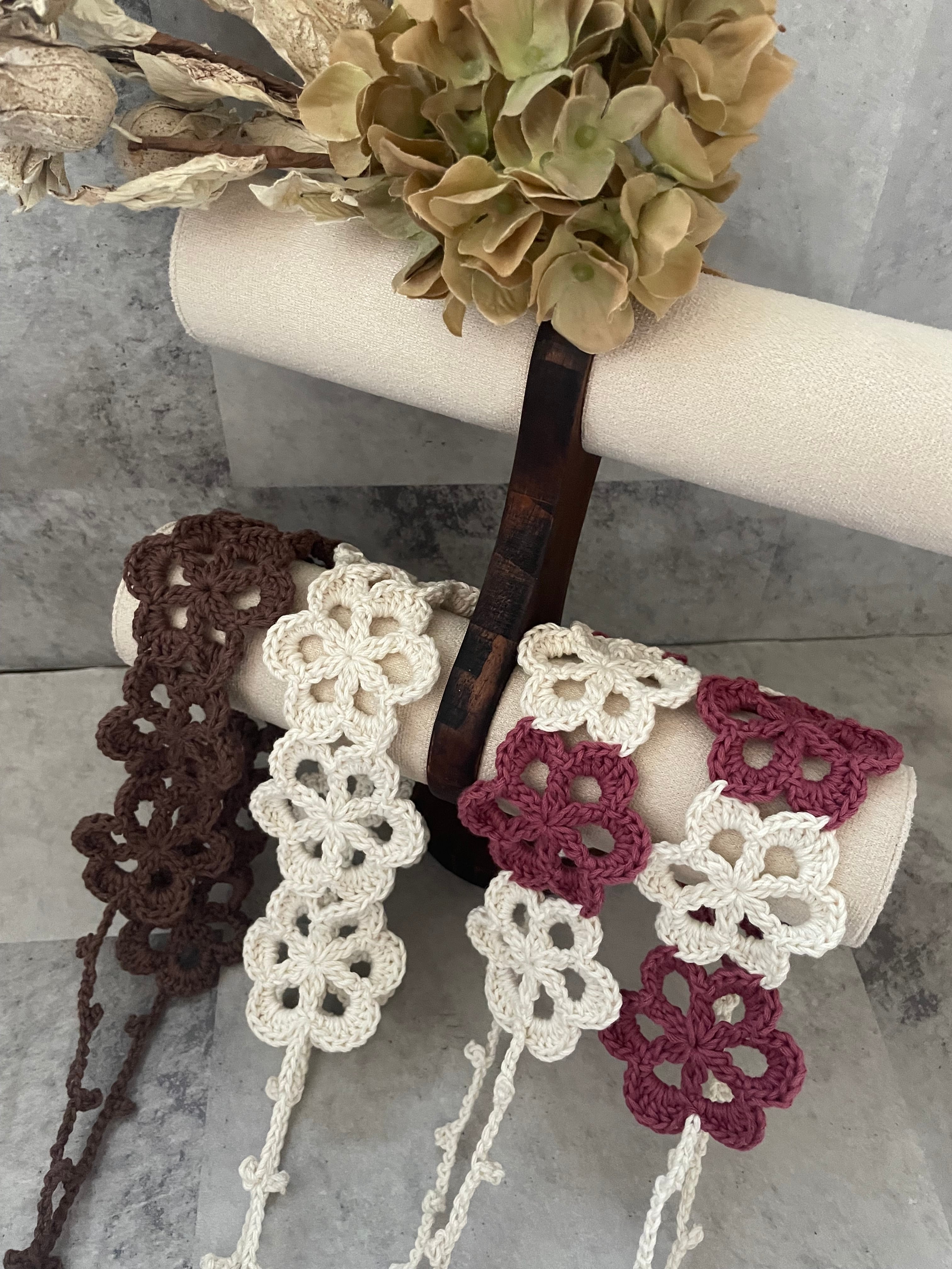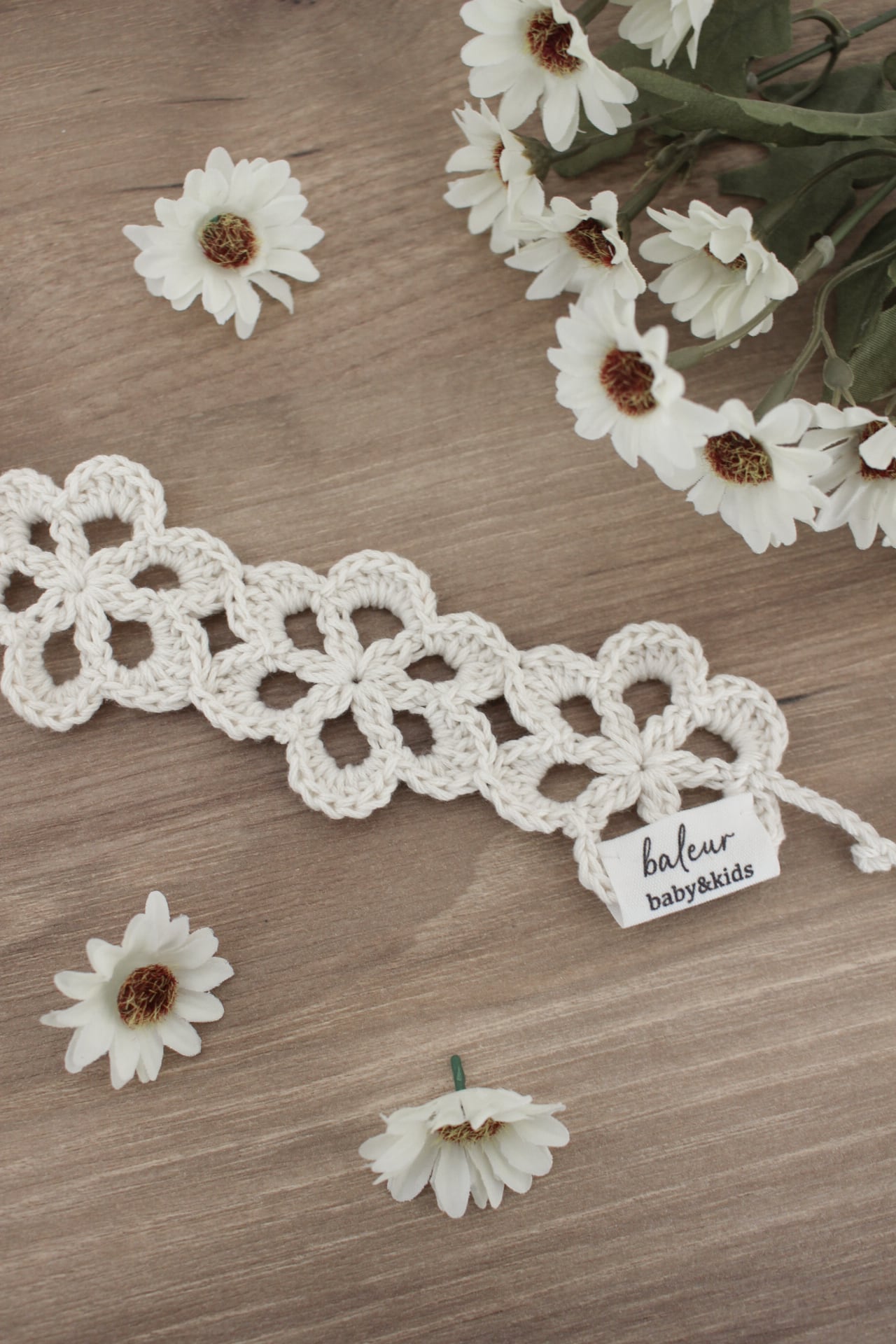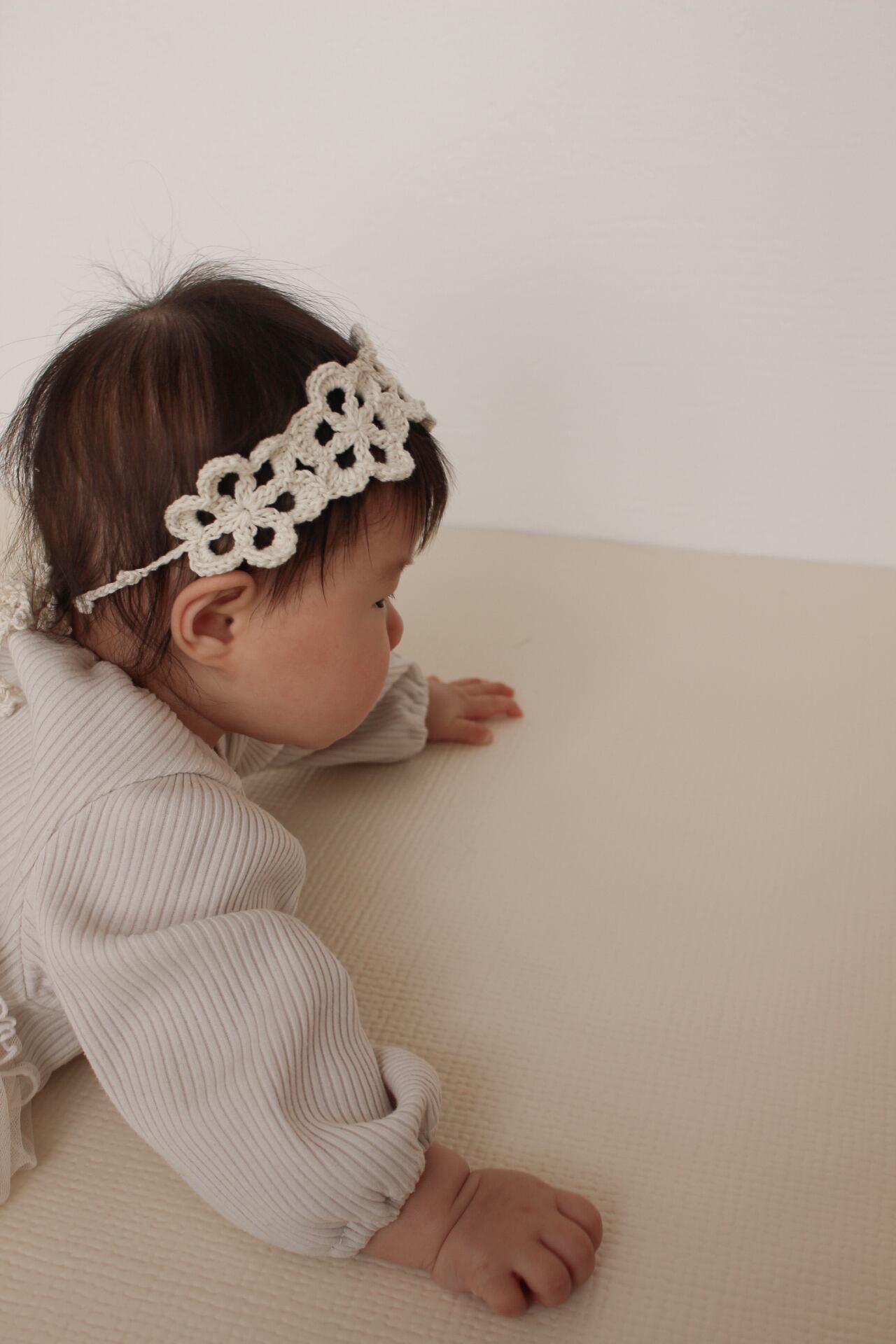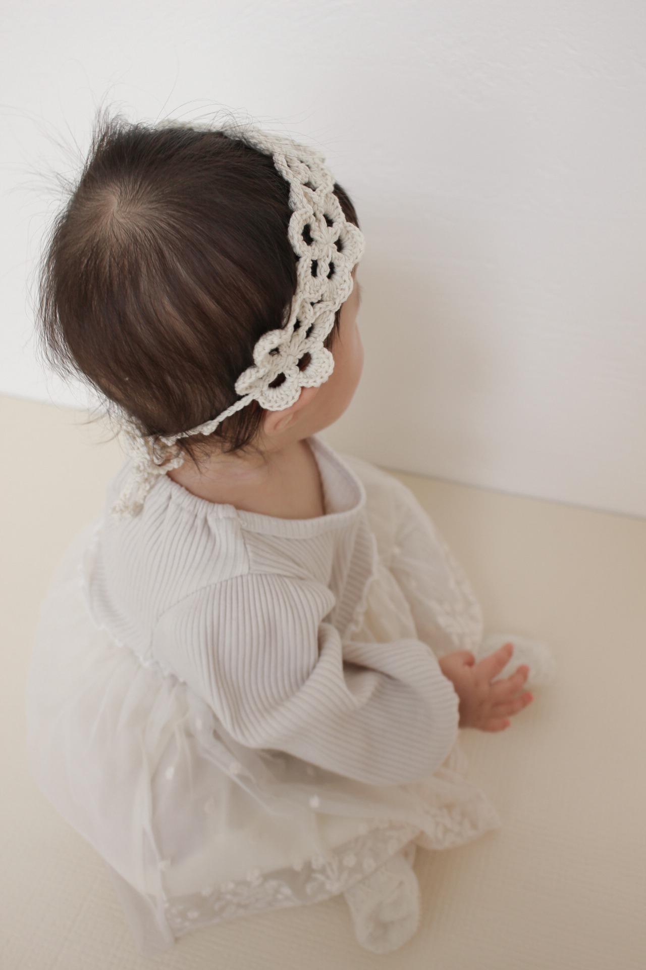 【2-3y】lace bloom band かぎ編みヘアバンド ベビーキッズ バレンタイン・お花見にも♡