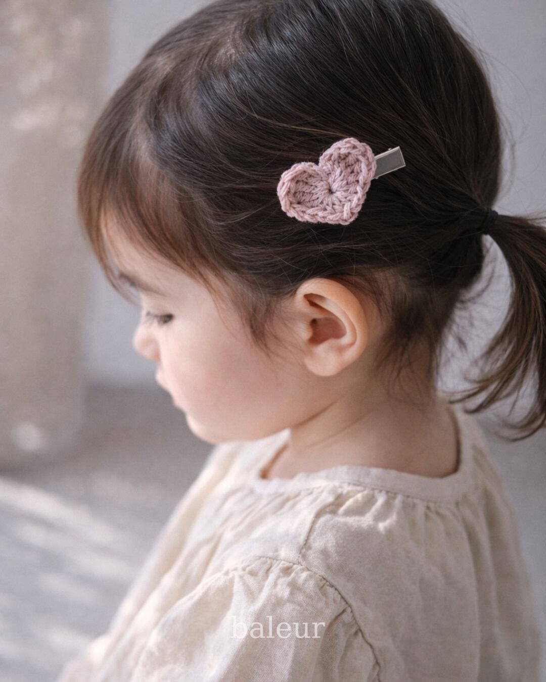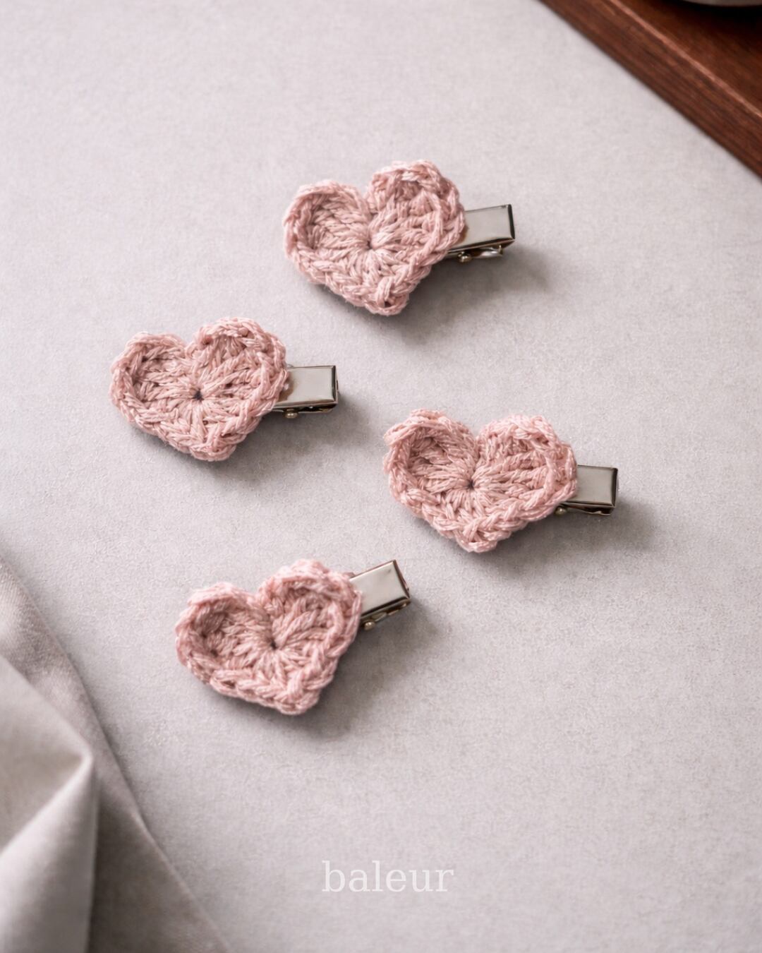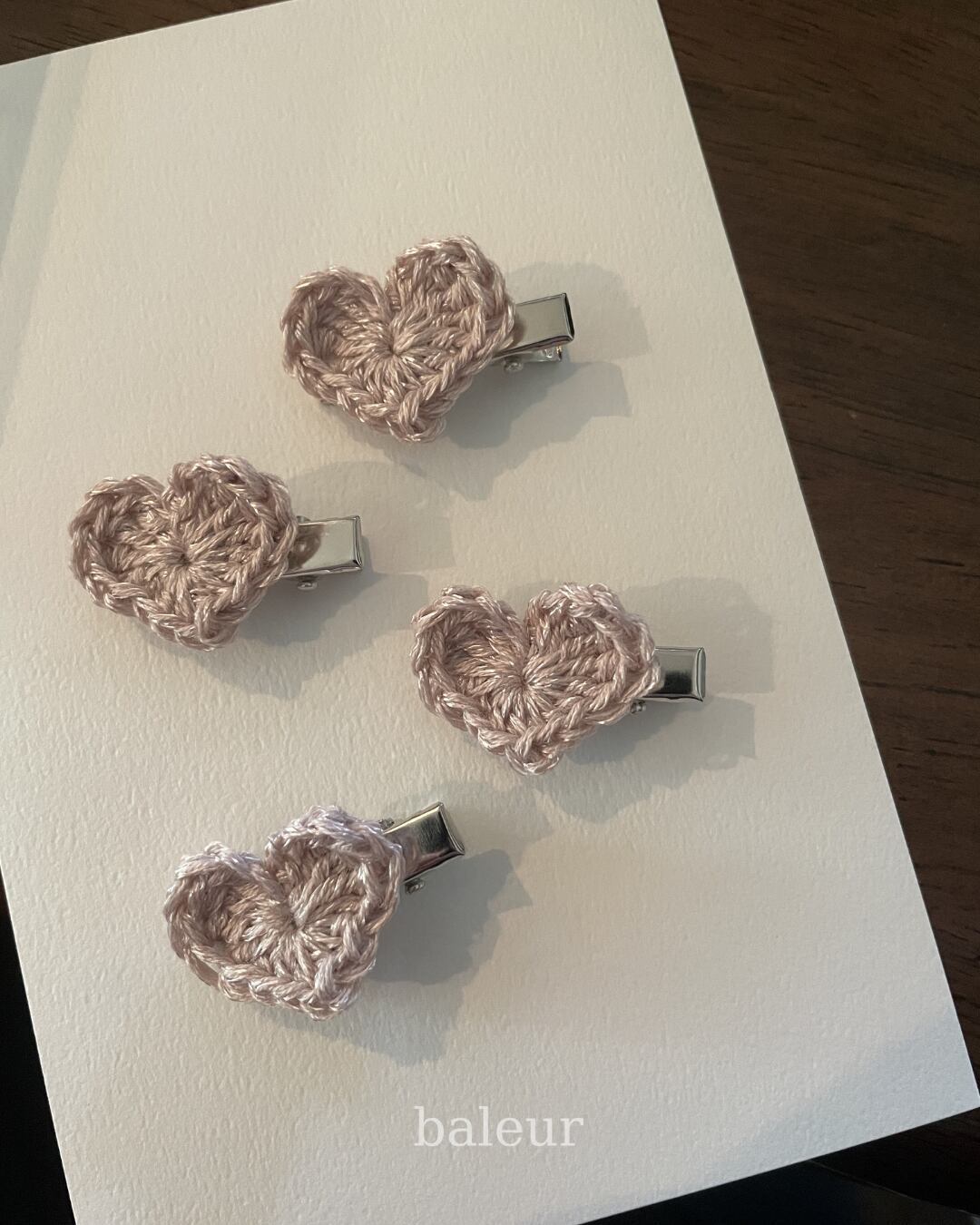 【再販なし】heart clip くすみピンク × ラメ 2点セット かぎ編み ヘアクリップ